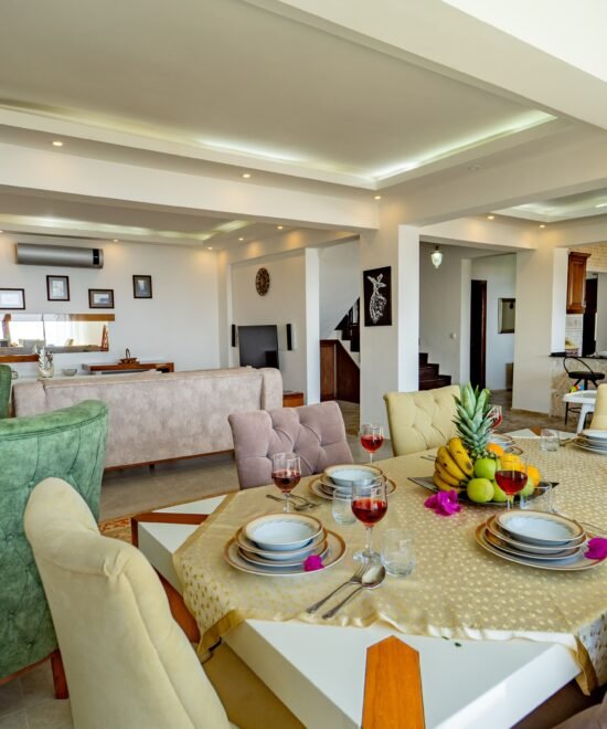Villa Elfuze’nin şık ve konforlu tasarımıyla keyifli bir tatil sizleri bekliyor. Geniş ailelere ve arkadaş gruplarına uygun olan bu villada aileniz ve sevdiklerinizle birlikte deniz manzarası eşliğinde muhteşem bir tatil geçirmeye hazır mısınız?